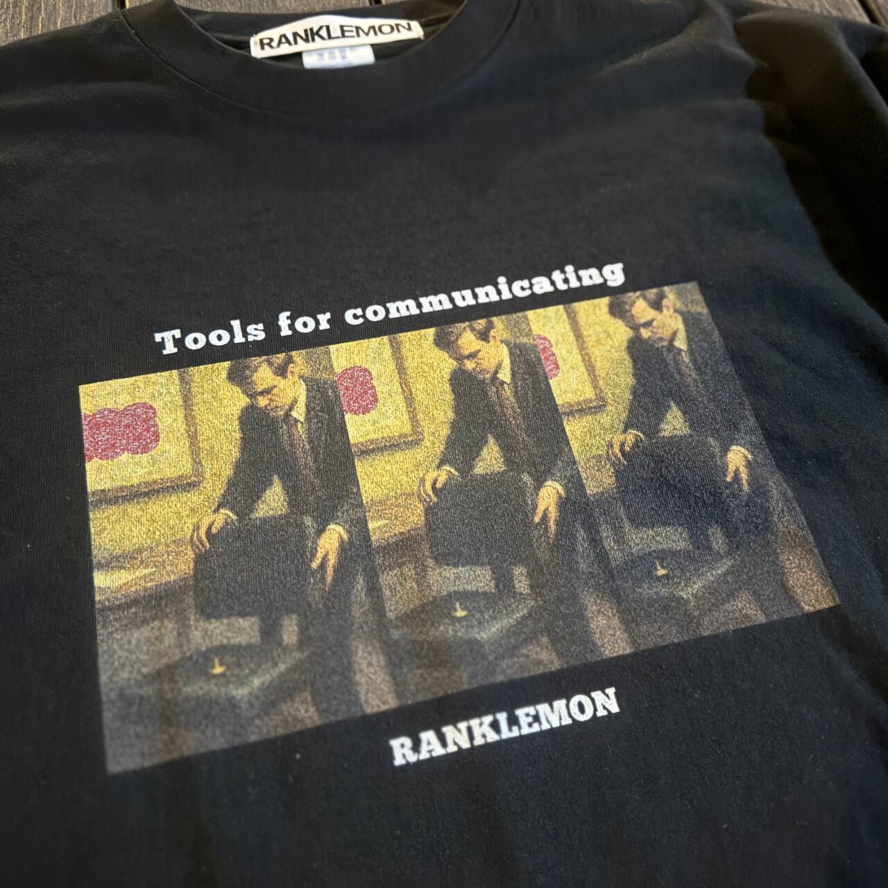 「仕事ばかりじゃなく、もっと人と話そう。」 椅子に仕掛けられた画鋲は、部下から上司への小さなサイン。 痛みを伴う前に気づいてほしい――そんな皮肉を込めたグラフィックです。 綿:100% 6.2oz カラー:ブラック ※商品到着まで2週間かかる場合がございますのでご了承下さい。